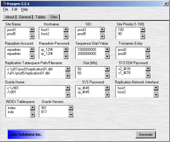 Repgen generates the scripts required to setup and monitor an Oracle 8i/9i database Advanced Replication installation. The implementation of primary key, replication triggers and multiple conflict resolution methods is included. Licensed customers of Repgen Enterprise Edition receive source code and the ability to make site-specific customization of the generated files via an external module.