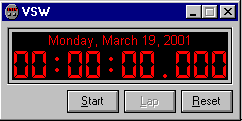 Virtual Stopwatch is a feature packed clock program for Windows 9x, NT, 2000, or XP. It functions as a stopwatch, a timer, or a clock. Time events with up to 1/1000th of a second accuracy for up to 24000 days. Countdown to a specific date and time. Virtual Stopwatch supports a full featured time logging system. Log accounts allow you to log time to separate projects. Log data can be edited, exported, and printed in reports. You can create alarms that beep, play a WAV file, run a program, and display a message. The graphic time readout is completely configurable and can be shown as an analog or digital display. Check out the many other features not mentioned here.